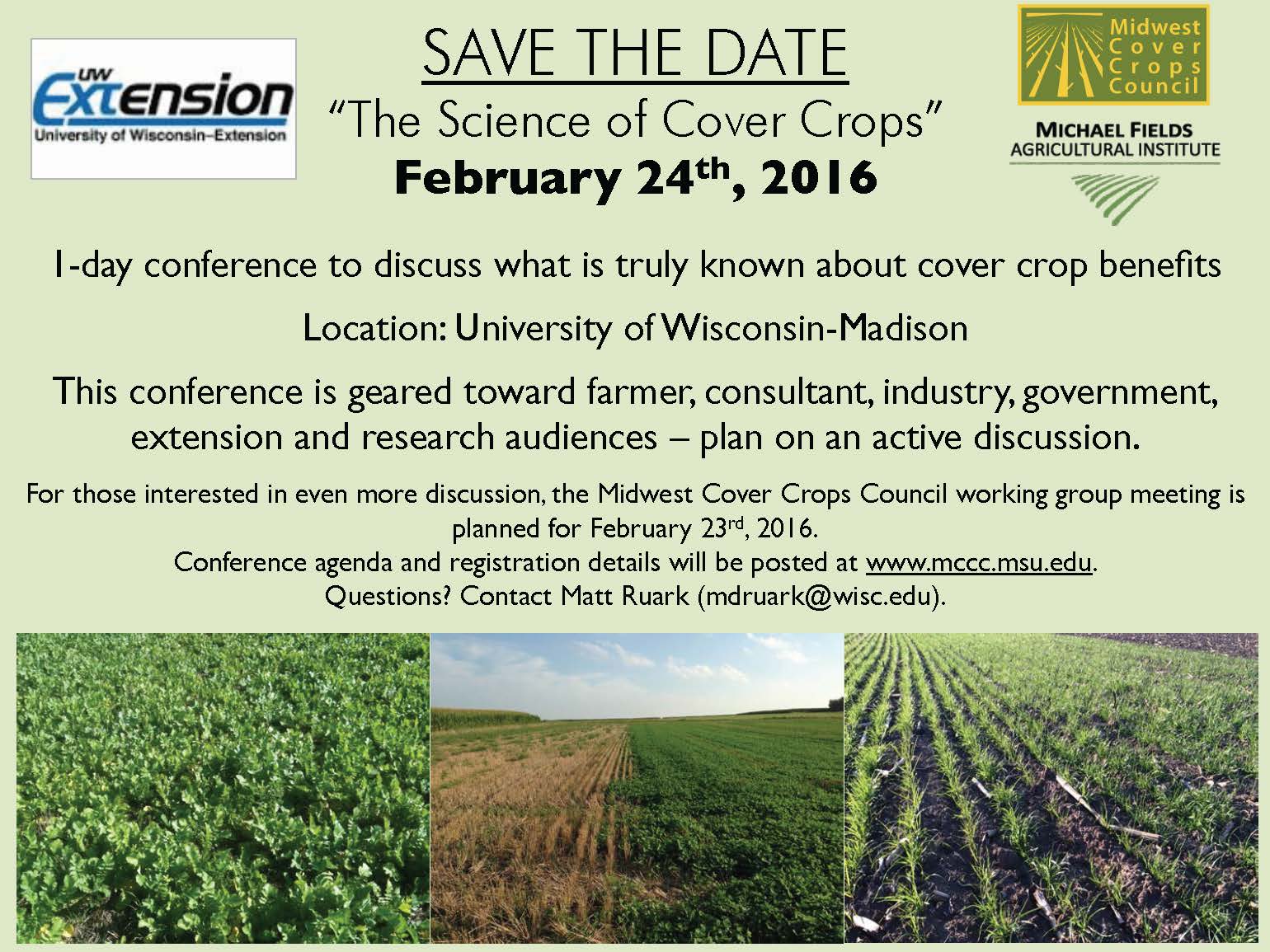 Save the date – February 24th, 2016 – The Science of Cover Crops Conference September 18, 2015September 18, 2015 | Download the save the date flyer here. This article was posted in Cover crops.